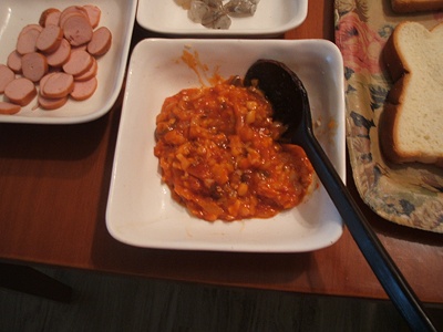 first, I make some sauce with onions and ketchup.