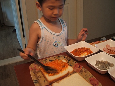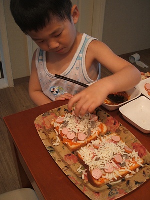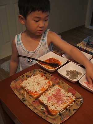 Let's make some pizza for your snack.