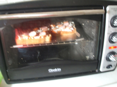 Put toppings on bread.